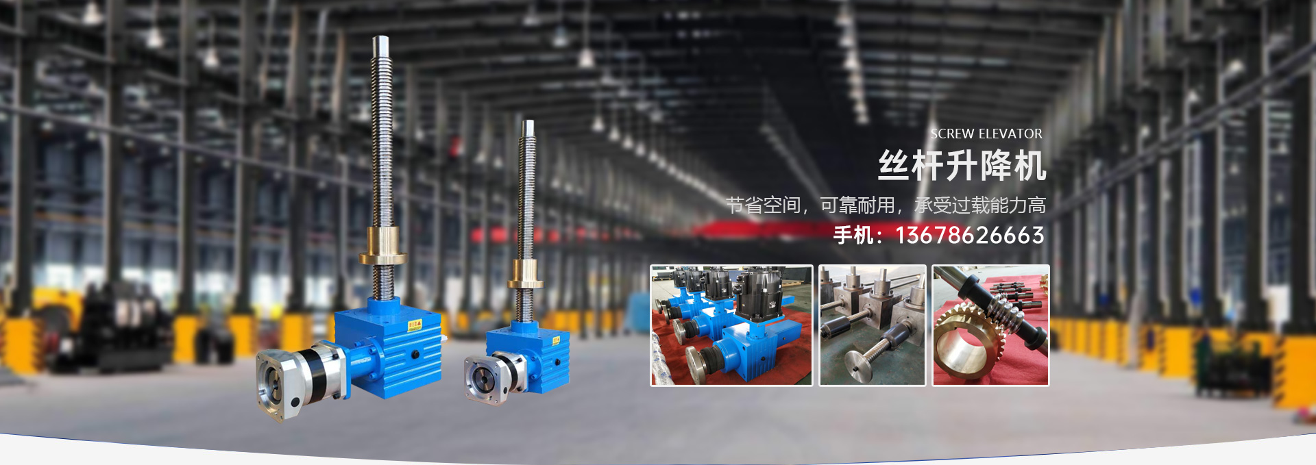 主營產(chǎn)品:絲桿升降機(jī)、螺旋升降機(jī)、螺旋絲桿升降機(jī)、蝸輪絲桿升降機(jī)、滾珠絲桿升降機(jī)